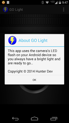 This flashlight uses the camera's LED flash on your Android device so you always have a light and are ready to go...