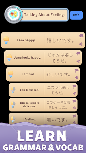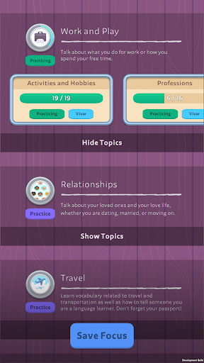 - belajar kata-kata dan frasa yang relevan dengan kandungan yang dianjurkan di sekitar tema berguna seperti memesan makanan dan pertemuanOrang Baru