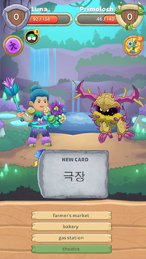 Uji kemahiran bahasa anda dalam pertempuran raksasa strategik.Lukis kad keupayaan dari dek peribadi dan jawab flashcards bahasa untuk memainkannya.