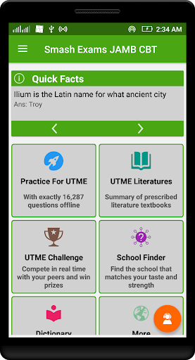 Smash Exams For JAMB UTME dirancang khas untuk melengkapkan anda dengan cemerlang dalam Unified Tertiary Matriculation Examination (UTME).Ia mempunyai lebih daripada 16,000 soalan masa lalu dan model dengan penjelasan.Ia berfungsi 100% di luar talian.