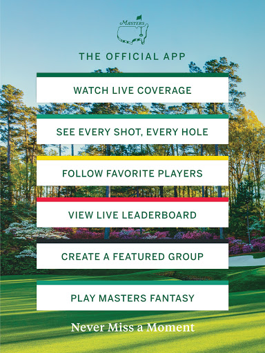 Membawa anda lebih dekat dari keindahan dan kegembiraan kejohanan Masters di Augusta, GA, pada 5 April -11th, aplikasi rasmi Masters menyediakan liputan yang paling komprehensif yang ada .