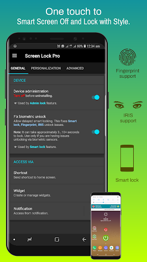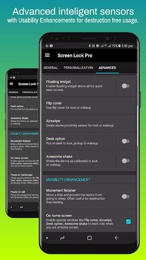 Skrin Lock Pro, dicipta untuk memanjangkan hayat butang kuasa perkakasan dengan menggunakan ciri dalam aplikasi. Sokongan untuk kedua-dua kunci admin dan sistem kunci pintar. Mudah untuk menyaring dan mengunci peranti bergantung pada pilihan yang anda pilih.