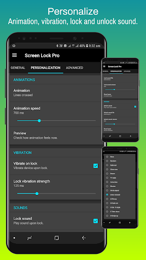 Animasi untuk memilih untuk pengalaman kunci telefon. Maklum balas getaran apabila telefon dikunci. Kunci dan buka kunci bunyi pada pelbagai mata untuk memainkan nada yang anda suka untuk mendengar. Kelantangan bunyi dipilih dari bunyi pemberitahuan sebagai jumlah dan boleh diselaraskan dengan lebih lanjut dengan mudah, juga menghormati mod DND.