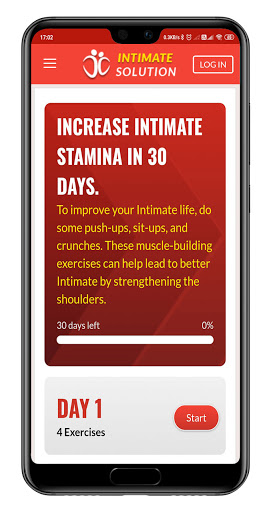 We provides 30 days exercise program that will take 15 - 20 minutes a day to complete and does not require any equipment. You don’t need to go to a gym, all you need to follow the instructions and practice with exercise at home which helps you in increasing Intimate Stamina because these exercises are developed by the professional trainers of Intimate Solution.