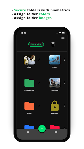 - Folder selamat dengan kod laluan peranti atau biometrik