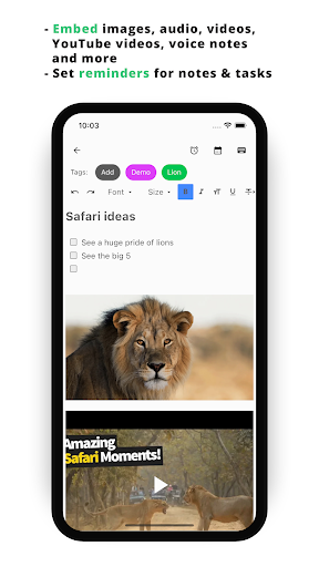 Tetapkan imej latar belakang peribadi dan pilih warna aksen yang anda mahukan.Benamkan mana -mana media yang anda mahu termasuk imej, audio, video, video YouTube, nota suara dan banyak lagi.Buat nota indah dengan editor berkuasa kami yang mempunyai semua pilihan pemformatan yang mungkin anda bayangkan dan kemudian beberapa.Ekstrak teks dari imej, menterjemahkan ucapan ke teks, membenamkan kandungan web dan banyak lagi.Fail anda disimpan dengan selamat dan bersedia untuk digunakan dengan serta -merta.Tingkatkan nota anda mengambil lebih jauh dengan data lokasi.Tambahkan nota atau tugas ke kalendar anda dengan klik butang.Tetapkan peringatan untuk nota dan tugas.Mengakses dan menggunakan aplikasi web percuma.