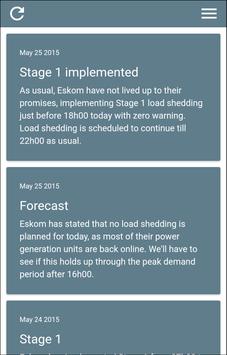 * This app is in no way associated with or endorsed by Eskom. As we are completely reliant on publicly available load shedding information from the various city municipalities, we cannot be held accountable for the accuracy of the information presented.