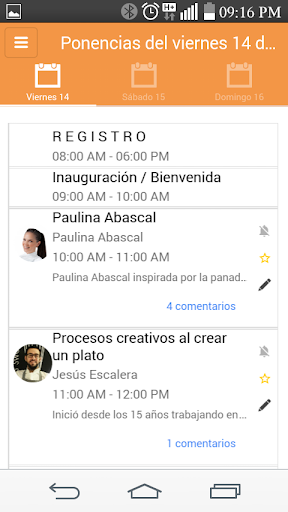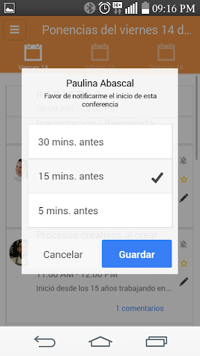 Ten el programa del evento a la mano en todo momento, utiliza los recordatorios para que no te pierdas de nada.