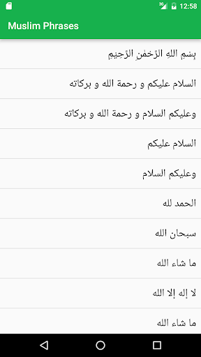 Muslim Phrases displays common phrases by muslim to another muslim.