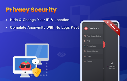 VPN Tomato Pro is professional version of VPN Tomato. It is a more fast, unlimited, stable and useful VPN (Virtual Private Network). It hides and changes your IP address, encrypts your internet traffic, turns public Wi-Fi into a private network, bypasses Internet censorship, overcomes geo-restrictions, grants access to the desired content, and unblocks sites, apps, games & global video streaming to let you access any restricted content safely and anonymously.