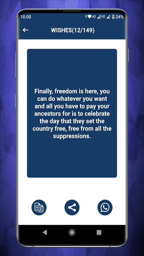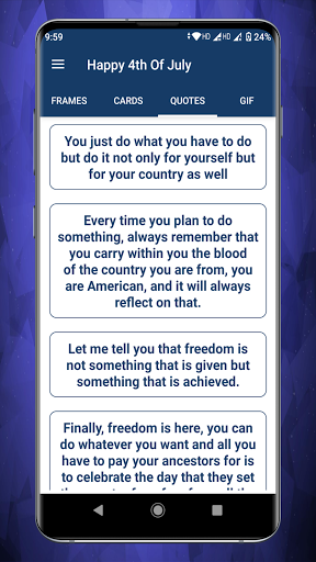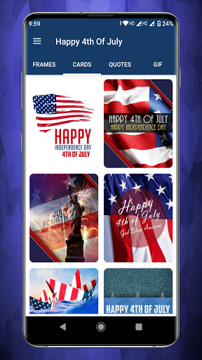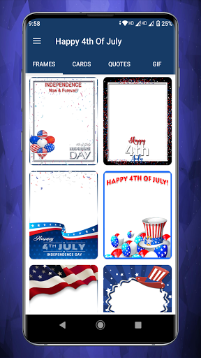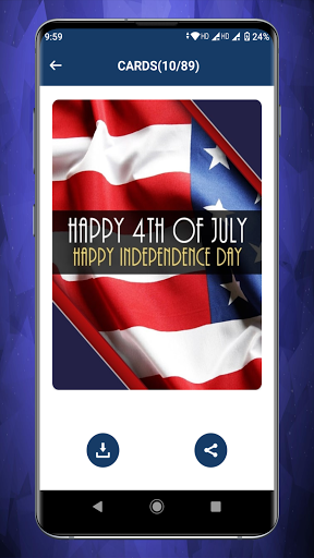 Aplikasi ini mempunyai koleksi Kad, GIF, Keinginan, Ucapan dan Bingkai Foto untuk Hari Kemerdekaan secara eksklusif. Aplikasi Wishes 4 Julai adalah kaedah terbaik untuk mengirim ucapan dan ucapan selamat. Anda boleh berkongsi, menyalin dan memuat turun sebarang ucapan dengan mudah.