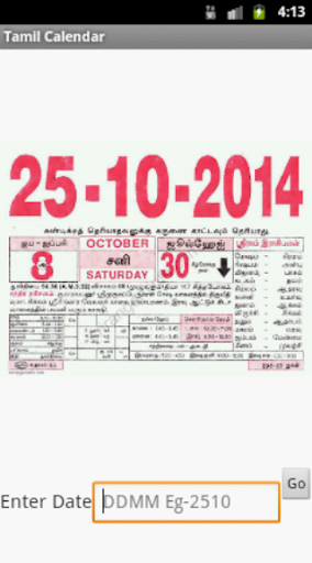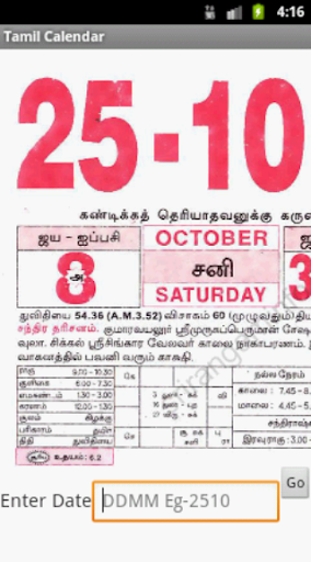 This application show you the daily calendar in the format of old Tamil calendar