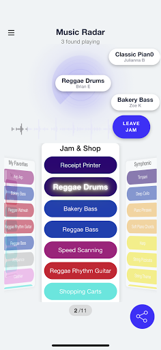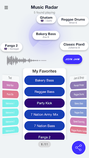 Cari pemain lain untuk jem menggunakan "Radar Muzik", atau berkongsi pautan ke tuan rumah secara peribadi Jam dengan rakan-rakan anda.