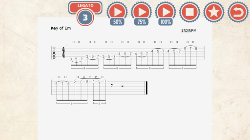 ● Setiap menjilat mempunyai audio yang dimainkan kedua-dua perlahan, sederhana dan cepat dan mengandungi penuh Transkripsi dalam Tablature Guitar (TAB).