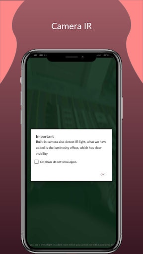 Kamera IR akan digunakan untuk mendapatkan radiasi inframerah dari kamera pada skrin telefon anda dengan kesan cahaya putih.