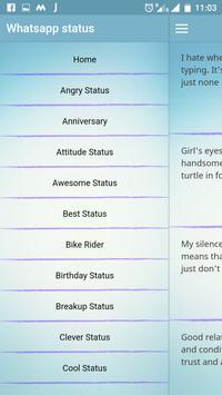 Compilation of best whatsapp status here.It includes motivational whatsapp status, funny whatsapp status, inspirational whatsapp status, angry status, attitude status, punjabi, hindi, english and all latest whatsapp status...