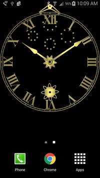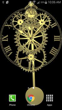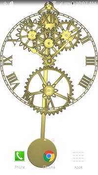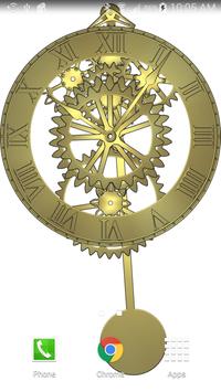 This live wallpaper simulates a pendulum clock. A pendulum clock keeps time using a weight (not shown), gears, and pendulum. The pendulum is 38 and 1/8 inches (994 mm) long from pivot to pendulum weight center. Any pendulum of this length, even one you make at home, will keep very good second by second time.