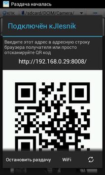 This application allows you to easily and quickly send files via WiFi. You simply enter the address into receiver browser or scan QR code