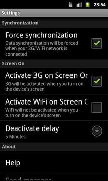* Option to activate automatically your 3G/WiFi network when you turn on the device's screen