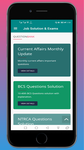 Penyelesaian pekerjaan & amp;Peperiksaan dimaksudkan memandangkan batasan lain aplikasi sedemikian di dalam kedai untuk membantu pencari kerja Bangladesh dalam penyediaan peperiksaan kerja.Anda boleh belajar subjek / bab-bijak dalam keadaan yang anda tidak mempunyai buku untuk menyediakan diri anda.Anda juga boleh menilai diri anda dengan muncul dalam ujian model kompetitif yang akan diambil oleh pelbagai pengambil peperiksaan.Anda akan menemui kemas kini urusan semasa bulanan.Bank, bank swasta, bank itu, NSI, juruaudit & amp;PSC satu lagi bank soalan.Br>