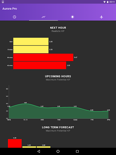 - Ramalan untuk jam berikutnya, beberapa jam dan beberapa minggu supaya anda boleh merancang lampu utara anda melihat lama terlebih dahulu (tertakluk kepada keadaan cuaca).