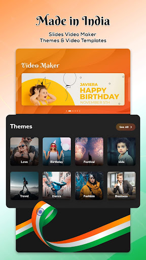 - Anda boleh menyesuaikan tema dengan menambahkan gambar anda sendiri, mengedit gambar dan tempoh setiap slaid gambar di video.