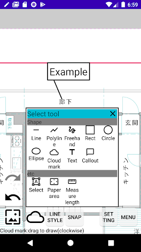 Memo Lukisan adalah aplikasi yang memasuki memo seperti teks dan garisan untuk lukisan CAD seperti fail JW_CAD (JWW, JWC) dan fail DXF dan fail imej (JPG). Juga, output PDF tersedia.> === Ciri ===