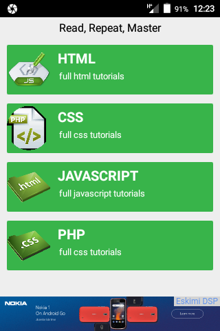 The app has all the necessary topics and skills that help in building of a complete website. These include, complete tutorials on topics such as HTML,PHP,CSS and JavaScript. All is arranged in a neat sequential way for the learner to study easily and enjoyably. No need to scavenge the internet for information, its all right at your finger tips.