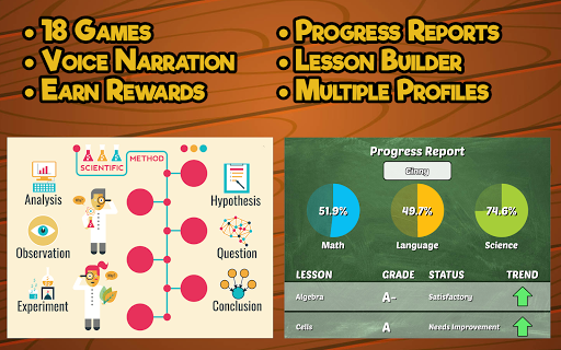 Setiap pelajaran dan aktiviti direka menggunakan kurikulum kelas yang sebenar, jadi anda boleh memastikan permainan ini akan membantu Beri anak anda rangsangan di dalam bilik darjah. Dan dengan naratif suara yang berguna dan permainan yang menarik, pelajar kelas 5 anda tidak akan mahu berhenti bermain dan belajar! Meningkatkan kerja rumah pelajar anda dengan pelajaran yang diluluskan oleh guru kelas 5, termasuk batang, sains, bahasa, dan matematik.