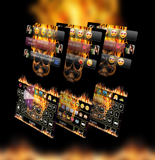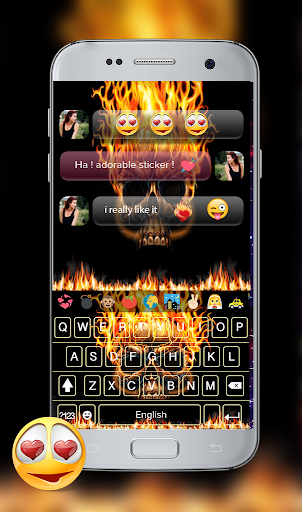 New Free Flaming Skull Keyboard theme!will bring your keyboard & text input a real new look & feel. Check this FREE personalized design for your Flaming Skull Emoji Keyboard right now! Go and get it.Hundreds of free and beautiful theme are waiting for you.