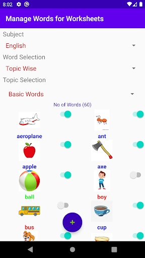 Aplikasi Pembelajaran Pintar menyediakan kemudahan untuk menjana lembaran kerja tanpa henti dan ia juga menentukan nombor, abjad dan kata -kata dengan cara yang sesuai untuk kanak -kanak.