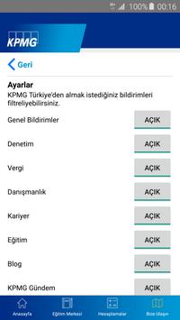 KPMG Türkiye Mobil uygulaması ile alacağınız bildirimleri, ilgilendiğiniz alanlara göre sınırlayabiliyorsunuz. KPMG Türkiye şirket ortaklarının iletişim bilgilerini de uygulamaya ekleyen KPMG Türkiye, artık her an yanınızda!