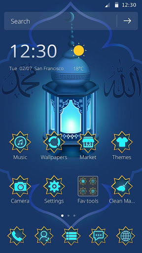 Allah Theme use black, white, gold as the main color, so that the screen appears serious solemn, sacred temperament, in line with the title of the Holy Land, is the oldest and most auspicious place;
