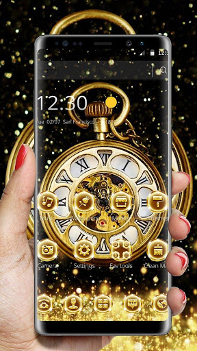 Fresh giant Gold Clock theme has Business wallpaper with Luxury Style icon packs. Gold Clock theme has a whole pack of Business theme app for Android phones, including Gold Clock wallpaper and Luxury Style icon changer for 100 popular apps.