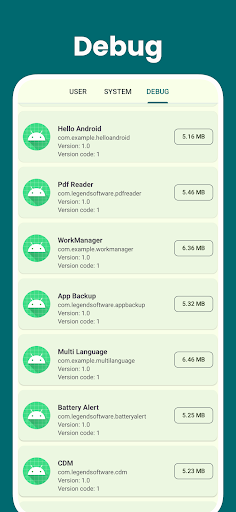 App Debug adalah alat yang berguna untuk pemaju dan pengguna maju untuk mendapatkan pandangan ke dalam kerja dalaman aplikasi yang dipasang pada peranti mereka.Ia memaparkan maklumat seperti nama pakej, versi, keizinan, aktiviti, perkhidmatan, penerima penyiaran, penyedia kandungan, dan banyak lagi.Di samping itu, ia membolehkan pengguna melihat fail manifes aplikasi dan mengeksportnya untuk analisis lanjut.Dengan Debug App, pengguna boleh mendiagnosis isu dan mengoptimumkan aplikasi mereka untuk prestasi yang lebih baik.