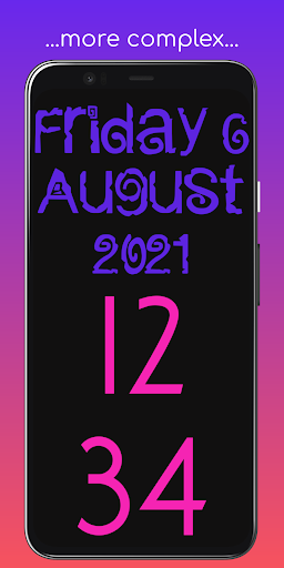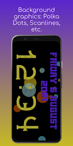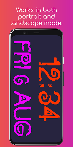 Jam skrin penuh yang boleh disesuaikan yang menunjukkan kedua-dua masa dan tarikh.