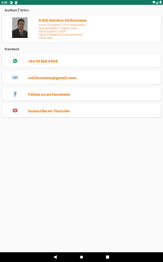 Kami berada dalam perkhidmatan terjemahan bahasa Inggeris / Sinhala dan kumpulan yang menyediakan perkhidmatan linguistik bahasa Inggeris di Sri Lanka dan kini sedang menjalani buku-buku bahasa akademik diri untuk membentuk keperibadian bahasa Sri Lanka.