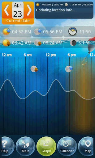 Memancing Deluxe membantu anda merancang perjalanan anda dengan meramalkan hari dan masa tertentu dengan kebarangkalian yang tinggi kejayaan memancing untuk mana-mana lokasi.