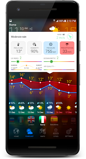 Algoritma ramalan cuaca yang unik mempunyai akses kepada beribu -ribu stesen cuaca.Ia membolehkan ramalan yang paling tepat untuk setiap lokasi di seluruh dunia!
