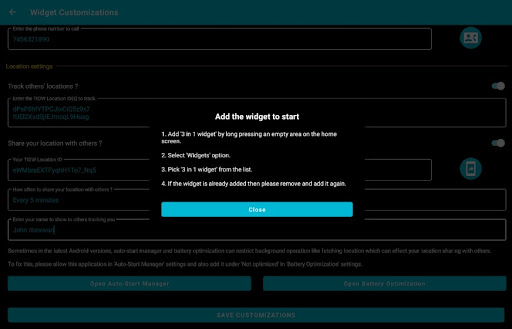 Widget ini membolehkan anda melakukan 3 perkara - Dail cepat satu ☎️, menjejaki lokasi orang lain bersama-sama dengan statistik telefon ⛯ dan mengawal telefon anda ⚙️.