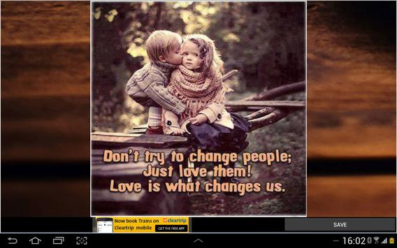 Love and Life Quote App contains 250 popular quote images, that will be loaded from the server and also users can have the option to save the image to their local sd card. You can Pinch zoom in as well as zoom out the Application.