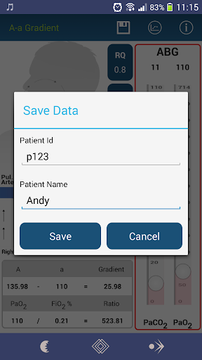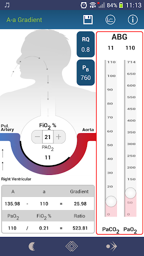 [PH2O adalah tekanan separa air (47 mm Hg)] & PaCO2 adalah tekanan separa Karbon di oksida dalam darah arteri.
