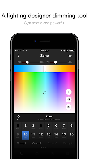 Dimming multi-zon dan perubahan warna, kawalan multi-kumpulan.