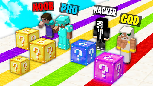 Sekarang anda dapat bersaing dengan rakan anda berkat peta Lucky Block Race yang menakjubkan. Sesiapa yang lebih pantas menang! Jangan lupa untuk membuang semua blok bertuah. Oh, dan perhatikan perangkap!
