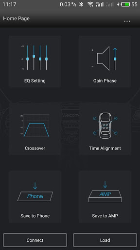 After connecting Car DSP Amplifier to the App, user can tune up sound, like EQ, Crossover, Noise gate, phase, bass, Time Aligment