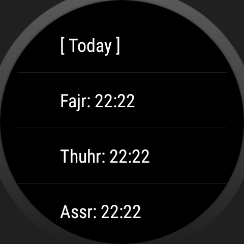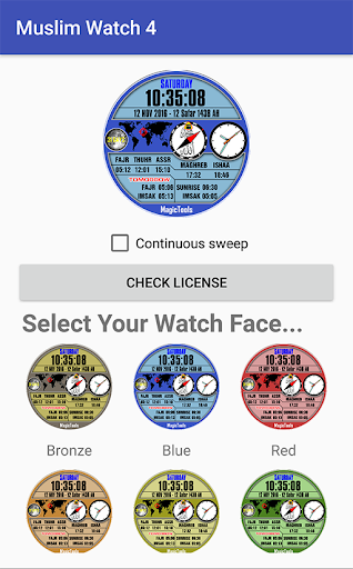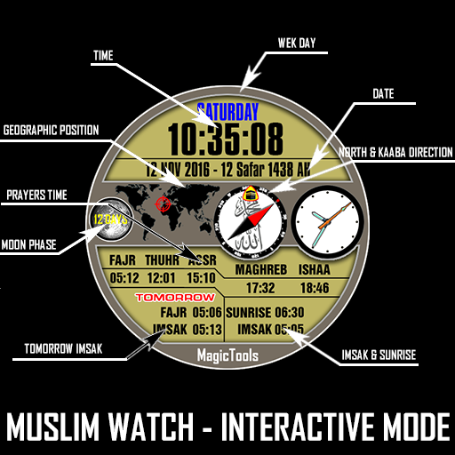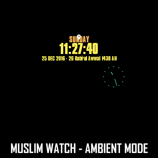 Watch Muslim adalah wajah Wear Wear Android untuk memakai jam tangan 1.0. Ia serasi dengan majoriti Wear Wear Wear di pasaran. Ia menyokong jam tangan persegi dan bulat, semua resolusi termasuk. Versi Wear 2.0 akan datang tidak lama lagi.