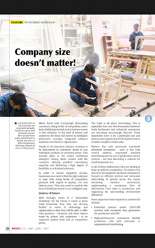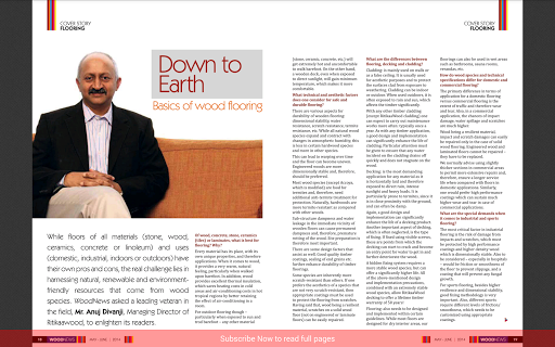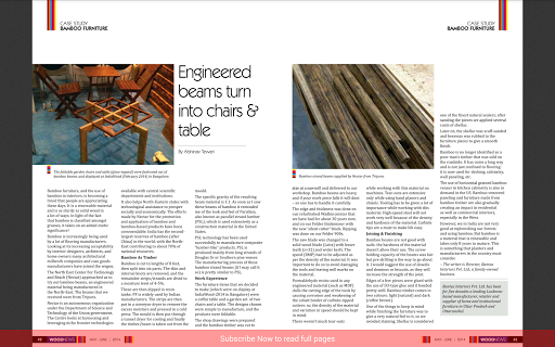 Wood News is India’s leading magazine in the wood-working sector having been continuously published for 21 years. It is the only title in India with its circulation audited by the Audit Bureau of Circulation. It is a bi-monthly title and is a must-read publication for those involved in furniture manufacturing, construction and interior design.