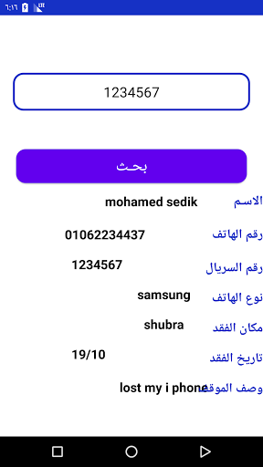 Aplikasi ini membantu anda dalam kes kehilangan telefon, sama ada ia hilang atau dicuri dengan memasuki dan menulis data telefon dan jika ia dijual atau mencari dan mencari bilangan gaji berkomunikasi dengan orang anda dan diambil untuk anda.