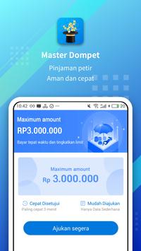 Master Dompet adalah suatu aplikasi pinjaman dana berbasis teknologi tanpa agunan yang mudah dan praktis. Master Dompet memberikan solusi bagi Anda yang membutuhkan pinjaman cepat dimana Anda hanya perlu mengunduh,daftar lalu mengisi informasi dan setelah melewati proses verifikasi dana akan segera dicairkan ke rekening Anda.