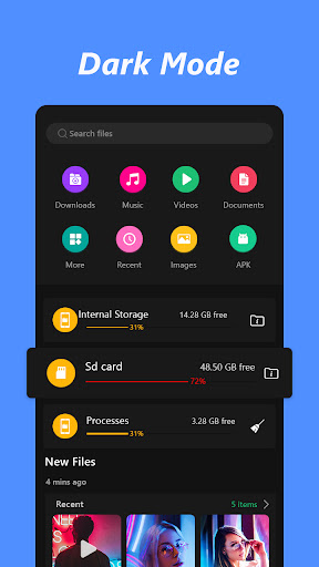 ⚡️ Storage organizer & Cleaner app to organize, move and back up your files easily and clean up your android phone’s memory to boost its usage performance. Use a visualized file analyzer function in file Manager Explorer for Android, you can clearly see the space occupied by various types of files. Analyze the Large Files & Recently Created Files & Idle/Redundant Files in main storage or SD card of your phone, find out which takes up the most space.
